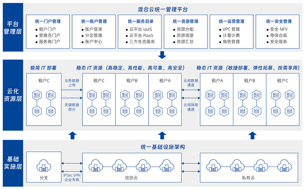 面向已部署多云、、、信创基础设施的行业用户,,提供自助化、、、、自动化的云服务快速交付服务。。。。管理企业内部多个数据中心的物理、、、虚拟资源,,,以及容器、、、、私有云、、、、公有云资源,,,并对以上资源进行混合编排,,提供基础软件和应用软件的自动化部署服务,,,以及云资源的全生命周期管理。。。。